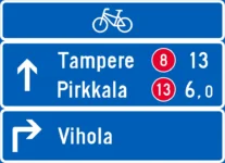 Merkillä annetaan ennakkotieto risteyksen liikennesuunnista. Vihreä pohjaväri osoittaa moottoritien tai moottoriliikennetien suunnan. Musta pohjaväri osoittaa yksityisen tien suunnan. Valkoinen pohjaväri osoittaa paikalliskohteen. Keltainen pohjaväri ja musta teksti osoittaa kiertotien tai tilapäisen liikennejärjestelyn. Punaisella vinoristillä peitetty kohde osoittaa, että reitti kyseiseen kohteeseen on tilapäisesti pois käytöstä.