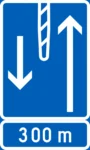 Merkin nuolikuviota sovelletaan tilanteen mukaan. Tilapäisissä liikennejärjestelyissä merkin pohjaväri on keltainen.